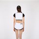 兩件式泳裝,一件上衣(有胸墊)及高腰褲,褲子後面附口袋,帶出運動風格。上一部分還有我們品牌獨特的拉鍊。非常舒適好穿喔~