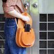 马鞍包的造型配上较为硬挺的植鞣革,让整体造型更有古董包感;使用牛颈部位皮革,前袋部分保留了自然牛颈纹,让作品更增添独一无二的特色。