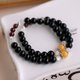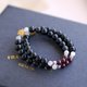**黑曜石+红石榴+黄玉双圈纯银手链**