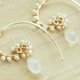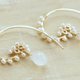 淡水パールをハートのフープに巻きつけて、レインボームーンストーンのドロップを下げました。