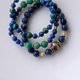 由于青金石带金的关系,金属配珠使用黄铜珠。