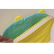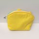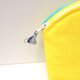 明るい黄色のコットンにシルバーのラメ糸で動物の顔を刺繍したポーチです。前は中がミントブルーのポケットになっています。
