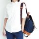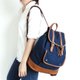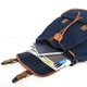 Material : denim fabric 14 oz (outside), black polyester lining (inside), brown pvc strap