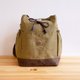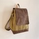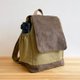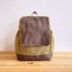 品名:手工咖啡绿绵布缀有牛皮后背包