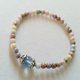 手工彩色陶瓷珠 配 雕花粉晶 或 紫蓝萤石 或 蓝玉髓 弹性手链 Ceramic beads elastic bracelet with Pink Quartz / Flourite / Blue Chalcedony