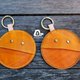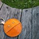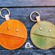[小精灵最爱吃零钱,请喂我吃吃吃。] 植鞣牛皮全手工缝制与染色 直径10厘米 秋季新色-暖黄 单手轻压两侧及可打开小精灵开口装零钱 附金属活动扣环 可挂钥匙或当包包挂饰 * 可订做其他颜色/尺寸 * 电脑显示图片可能出现色差,请以实物为准