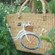 上面的脚踏车图案是用环保的植物纤维制作的线(像是:麻类植物、酒耶叶纤维)