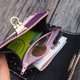 [皮革与蕾丝的相遇,是一场美丽的冲突。] 植鞣皮手工渐层染色 背面有自然皮纹 牛鼻锁扣环 内里衬黑色猪琅皮 布制三层立体格层 2格开放式 1格拉链式 可收纳名片、证件卡片、钞票、零钱。 尺寸:长12x宽10.5x厚3厘米 (未打开时) 限量生产 * 每片皮革都是独一无二,皮纹及颜色深浅会有些许落差,敬请留意 * 电脑显示图片可能出现色差,请以实物为准