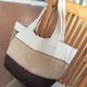 有个性之拼布之帆布与麻布设计托特包,轻巧搭配又有型,独特铆钉与拼布缝线设计,充满自然环保感。