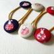表布 白红蓝紫图样。松紧绳 芥末黄。