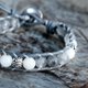 【材质】鹰目石6mm、银丝贝6mm、进口真皮绳、编织线、合金、不锈钢扣