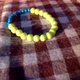 阴暗的天气和阴暗的心情需要明亮的色彩来鼓舞。 / 尺寸/ 手围约17-18cm可客制长度 / 材质 / 萤光黄色串珠、蓝纹石 / 使用及保养方式/ 尽量保持干燥,洗澡或游泳时取下 长时间不戴时请放入夹炼袋或密封罐中以防金属的自然氧化 更多手环: https://www.pinkoi.com/store/chuhsien?subcategory=205 产地/制造方式 台湾,手工串制