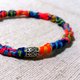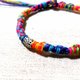 扣上的方式,是用蜡线套住圆盘款捷克珠。亮眼的珠珠让手环更有整体风格。不用担心容易脱落,珠珠可是会被牢牢套住。