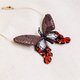 - 纯刺绣一线一线交织而成的立体蝴蝶项链,搭配优雅透亮的天然石,是款华丽且轻盈的精致项链。