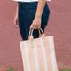 所以我们决定使用screen print方法把间条纹印落麻棉布上。
