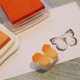 上色用橡皮印章,如果上下使用两种颜色的印泥,就可以盖出色彩斑斓的蝴蝶哦。