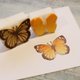 3. 盖上蝴蝶的轮廓后,使用上色用橡皮印章,为蝴蝶加上色彩。