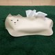 ベージュの合皮で作った白猫のティッシュケース。