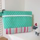 薄荷绿的水玉布料以粉系的条纹布料搭配,