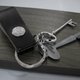 造型圆弧俐落,可装上数把各式钥匙,四合扣可开启,可扣于腰间或手提袋上