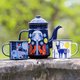 壶上的图案是描述一个被施了魔法的森林里面,住着可爱的猫头鹰与狐狸˙。整个设计虽然都没有文字在上面,但设计师却巧妙地运用了深蓝色、黄色与橘色来构成一幅美丽的图画。无论是邀请朋友来家中聚餐、或是和家人在花园喝着咖啡共度一顿美好的下午时光、又或是一个人在家里享受着片刻宁静,这款珐琅壶都是您的最佳选择喔~