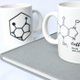 咖啡、茶、巧克力、可乐中都有咖啡因,它无法让我们睡得更少,但可以短暂让我们清醒。独家贩售的咖啡因之杯,一面表现了咖啡因的化学式、质量与熔点,另一面歌颂它的发现者与分子结构。