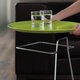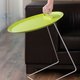 以铁线镀铬立脚和塑料桌面混搭,营造出一种对比的美感,简约的设计能随意地游逸于居家生活之中。桌盘可单独使用,或置放于脚架上即为边桌茶几,而把手部份可以直接将茶几提起,方便移动。