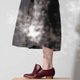 系列作品打破鞋面传统鞋型,生命力的线条发展于鞋面上,如同自然界里动植物萌发的生命力。企图描述一种安静的爆发力之美。如潜在地底下的能量,不断累积而爆发而出的新生命;使用大量非直线、离开楦体、皱褶、包覆等等设计手法元素,展现在本季的系列上。