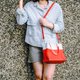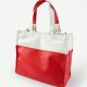 皮革拼色纸袋包 - 手提/肩背 两用 (白+红)