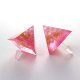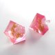 ピンク系のカラーとゴールドをクリスタルレジンで閉じ込めたペンタゴン型のピアスです。