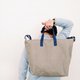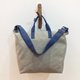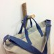 水洗暖灰色主体,水洗深蓝色背带/提把,深蓝色薄帆布内里。