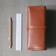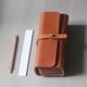 这是款可当笔盒、化妆包或眼镜盒的皮件,长达 17 厘米厚度也有 4 厘米(可装 3.5 厘米厚),因此大部分的笔跟眼镜都可以放的进去,两侧多了垫片让内装物在合上时不会容易跑出来。对称的线条,结构立体、简约而经典。