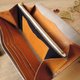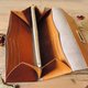 有13个卡片夹层,其中一个稍大的可放行驾照,2个钞票夹层(也可收纳发票),1个拉链零钱夹层,还有2个中间夹层可以放手机
