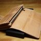 尺寸约为19x10cm,内侧有三个钞票层,12张卡夹层,一个拉链零钱层。