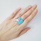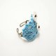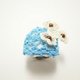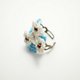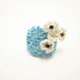 以手钩蕾丝及串珠蕾丝技法所制做的富手感原创的戒指,珠材系采日本进口玻璃小珠,天蓝色的钩编蕾丝搭配米色的串珠蕾丝花片,交织出其活泼独特的样貌。