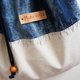 材质 / 弹性牛仔布 . 日制棉麻布 . 真皮皮标