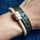 小拳头绳结手绳由纯朴粗犷的幼麻绳制作,配上两端合金扣和品牌的皮革小牌。