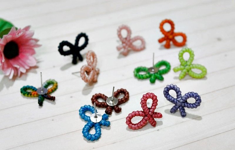 纯手编蝴蝶结蜡线耳环特别又可爱