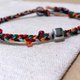 绿、红、黄、白、黑五种颜色的蚕丝蜡线编制成宽版中性的手环,颜色相互交错,既浓郁又对比。925纯银方块的位置是在手环的 1/3 处,非位在正中间,如此的她佐上数颗如洒落般的日本珠珠们,搭上宽版的蚕丝蜡线,有着强烈存在感但又不呆板的个性。所以,配戴时,妳/你可以把925纯银方块摆放在手腕外侧或是内侧,各有不同风格。