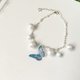 < 闪烁飞翔浅蓝色纹理粉红手绘蝴蝶棉棉珠水晶珍珠手链 >
