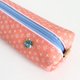 ピンクの着物とブルーのファスナーで組み合わせたキュートなペンケースは、デスクの上でも存在感バッチリ。