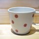 **商品叙述**: 点点来了 自由的点点散落在小杯子上 看似相同却都是独一无二 马克杯的曲线自然地呈现 好像有点圆又不太圆 点点来了 就开心起来了 **尺寸**:杯口直径约9.5cm高8.5cm含杯把长13cm **材质**: 高温1230度烧制,白瓷 **使用方式**:食用器皿,可微波 **制作时间**:商品若无现货,因手工制作,一窑制作时间约需10~15个工作天,若有任何疑问欢迎来信询问喔!! **产地及制造方式**:台湾 made in Taiwan/纯手工制作 Handmade