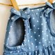 牛仔布料上面印着可爱的圆点点,肩膀的地方还有两个蝴蝶结可爱又不失休闲感,女生的衣柜绝对不能少了这一件