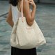 - 大容量好装、好背的托特包就是出门的好朋友。 就像我们的每一款设计,都有不只一种样貌,利用扣环可以帮这个包包变形,也能增加使用上的安全性。