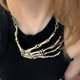 骷髅手项链由珠宝大白铜制成。项链配有长 24 英寸的黄铜链,如果您需要其他长度的链,请在结帐时留言给我,我会调整,无需额外付费。我制作的这件工艺品整体都是黄铜的真实颜色。没有电镀,因此您可以随时抛光。