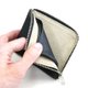 钱包当中有零钱专用口袋,零钱的家就在这里。开口虽然没有拉链,但拉上L型拉链后,间隙比一元硬币还小,不用担心零钱掉出来。拉开L型拉链后,就可拿出零钱,