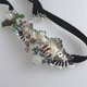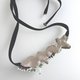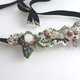 这款项链以立体刺绣的绒面革缎带制成,上面点缀着精致的珠饰。