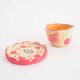 商品特色 由 The Little Buby 手工捏制与绘制,每组皆为唯一一组,杯身为爱心与圆点交织的童趣风格,内部为亮眼橘黄色釉面,点心盘为花瓣造型,中央搭配代表角色的可爱眼睛插画。 适合作为小茶杯、甜点盘,亦可收纳饰品或小物,实用又疗愈。 使用方式与注意事项: 适用于常温或温热饮品与干点心,不建议微波或放入洗碗机,建议手洗,避免使用钢刷。 每件为手工制作与上色,略有釉色不均或手捏痕迹为自然工艺特色。