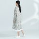 清爽質樸的棉麻材質,搭配簡單的白描勾畫,寬大的裙袍有婉約與書卷氣,但並沒有過分性別化的甜膩感,適合安安靜靜的姑娘。