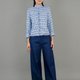 经典回归 —— 标志性的紫白粗花呢拼色,为这款唐装外套增添独特魅力。采用质感粗花呢布料剪裁,略带A字版型,巧妙平衡传统与现代美感。无论搭配直筒长裤展现俐落职场风格,或配上牛仔裤营造随性夜晚造型,都能轻松展现优雅与时尚。